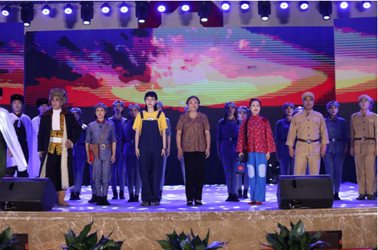 文藝演出結束,全場起立,共同高唱《沒有共產(chǎn)黨就沒有新中國》,熱烈掌聲經(jīng)久不息。
