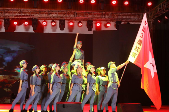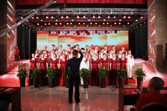 大會休會10分鐘后,一曲《紅旗頌》拉開了文藝匯演序幕。飄揚的紅旗蕩起火紅的海洋,帶人進入革命的世界,心情豪邁,催人奮進。緊接著,《我的祖國》、《十送紅軍》、《唱支山歌給黨聽》、《朗誦》、《打靶歸來》、《在希望的田野上》、《戲曲》、《祖國不會忘記》等節(jié)目一個比一個精彩,一曲比一曲高亢,歡快的鼓點、優(yōu)美的舞姿將中華兒女團結之心、愛國之情、幸福之悅演繹得酣暢淋漓,現(xiàn)場氣氛熱烈而又溫馨。特別是情景劇《十送紅軍》,悠揚的嗩吶聲、優(yōu)美的舞姿,展現(xiàn)了紅軍前仆后繼、披荊斬棘的頑強戰(zhàn)斗,深深表達了革命根據(jù)地人民與紅軍難舍難分的情感。《朗誦》節(jié)目中講述了黨的百年奮斗史,展示了黨的豐功偉績,謳歌了偉大新時代。一段段的深情回憶、一句句鏗鏘誓言,激發(fā)出拳拳愛黨心、濃濃愛國情。節(jié)目匯演中間,播放了《安陽中聯(lián)轉型升級宣傳片》、《企業(yè)文化宣傳片》,全體黨員聚精會神地觀看,暗淡的燈光下涌動著對企業(yè)最為強烈地情感,最為堅定的意志。